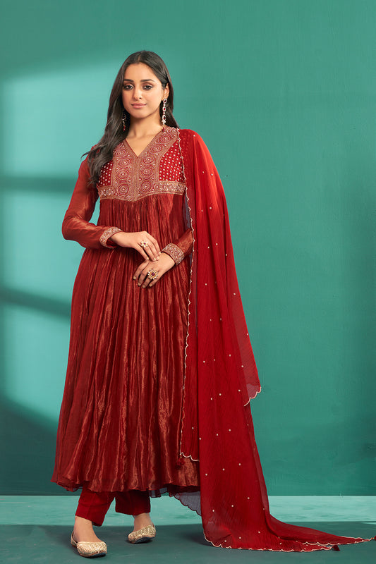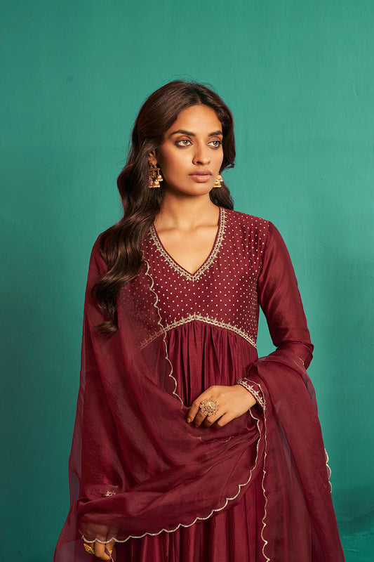 Priyanka Chahar Chaudhary in Crimson Anarkali