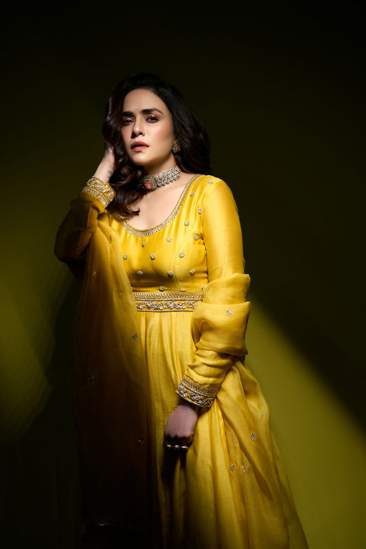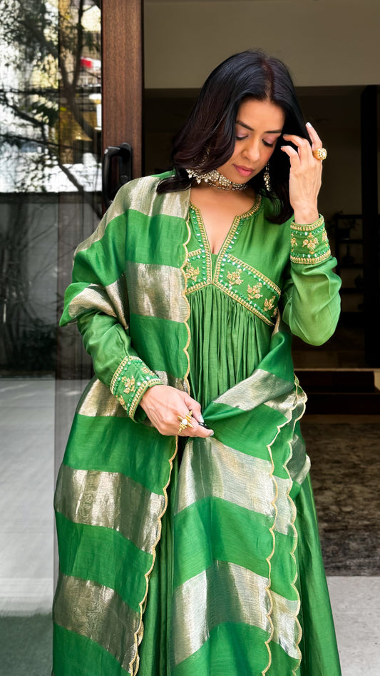 Rishu Diwan in Parrot Green Anarkali